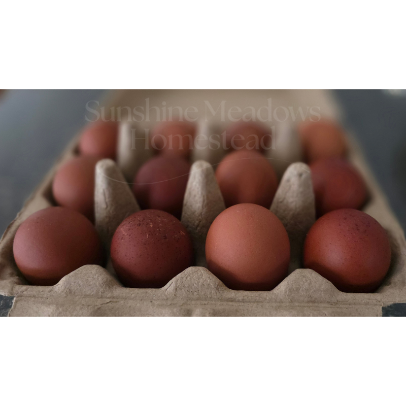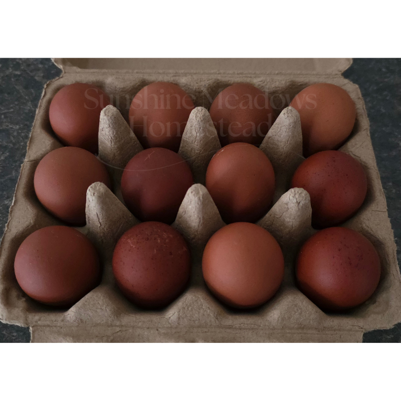 What makes Crele Penedesencas especially unique is their egg color and laying consistency. They lay deep terracotta-colored eggs, often with an earthy matte finish that sets them apart from the shiny chocolate eggs of breeds like Marans. The pigmentation is naturally strong and tends to stay consistent longer into the laying cycle compared to some other dark-egg breeds. Although they are not high-volume layers, their eggs are visually impressive and highly sought after by collectors and breeders who appreciate rare and heritage poultry.